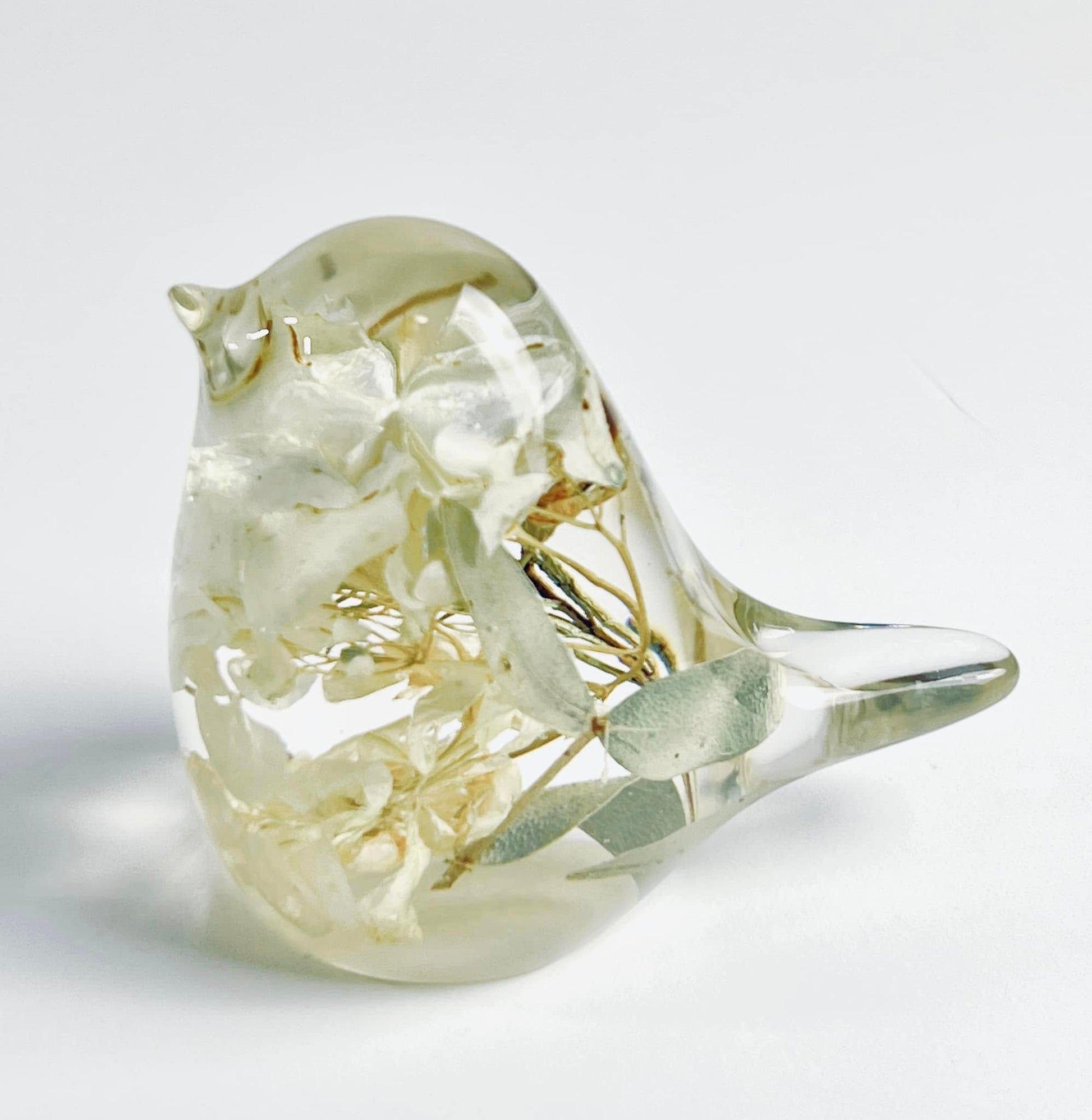 It is important to know that some flowers will fade during drying or pressing. For example, white will alter to beige, red will alter to maroon, light pink will alter to almost white. Resin will also naturally amber over time. Please keep out of sunlight and away from heat. We will offer color enhancement at our discretion in detrimental situations only.