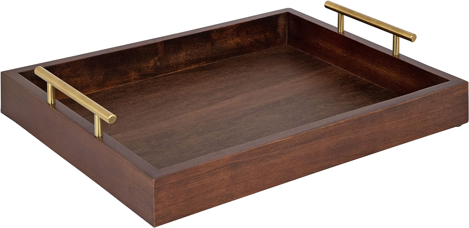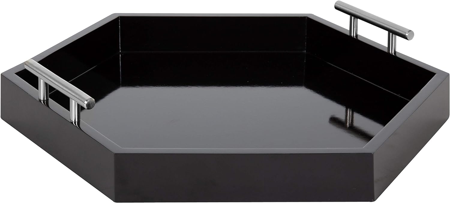 Colored trays are 12x16 inch, 15 inch circle, or 18 inch hexagon with gold handles.