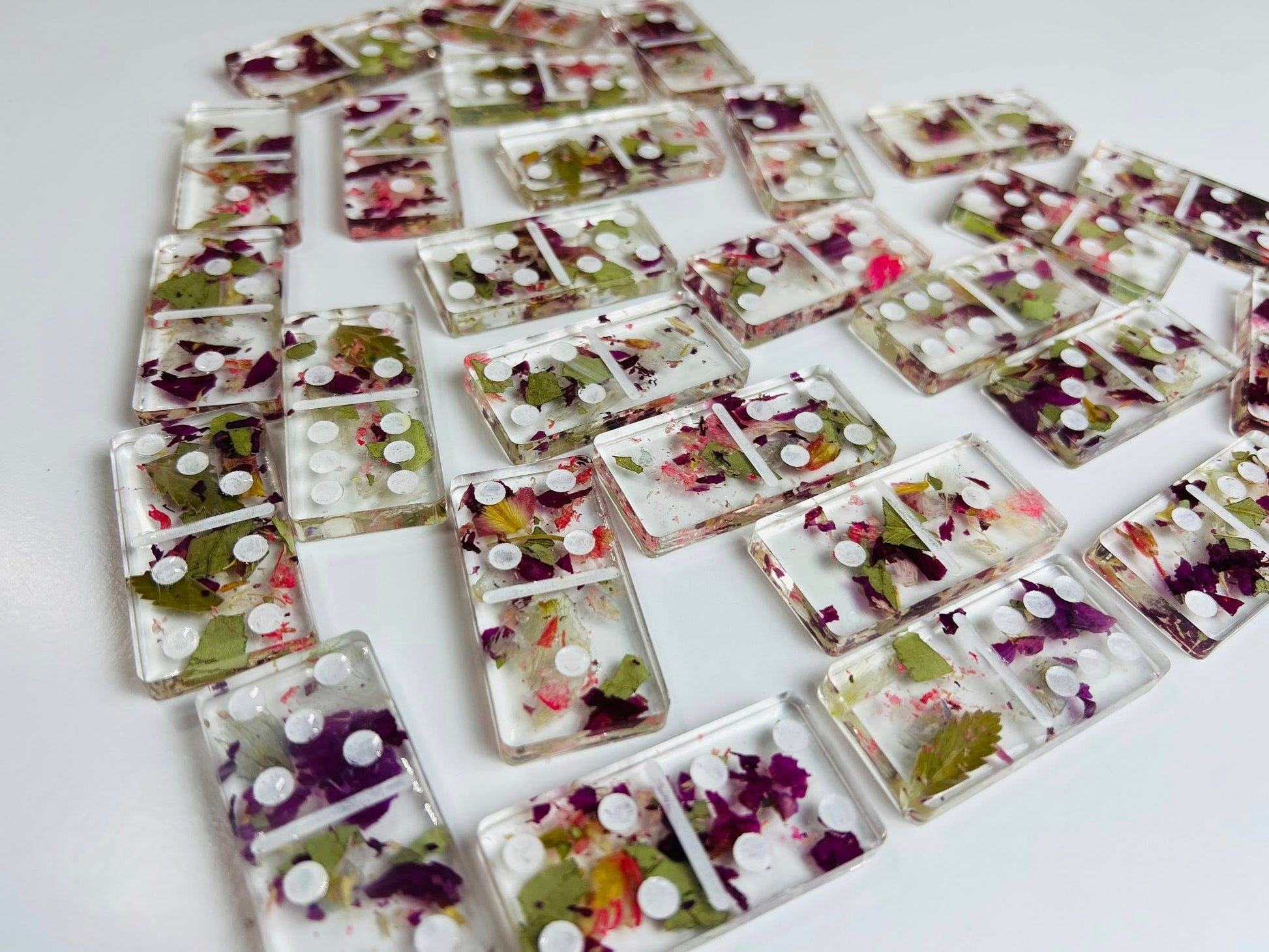 It is important to know that some flowers will fade during drying or pressing. For example, white will alter to beige, red will alter to maroon, light pink will alter to almost white. Resin will also naturally amber over time. Please keep out of sunlight and away from heat. We will offer color enhancement at our discretion in detrimental situations only.