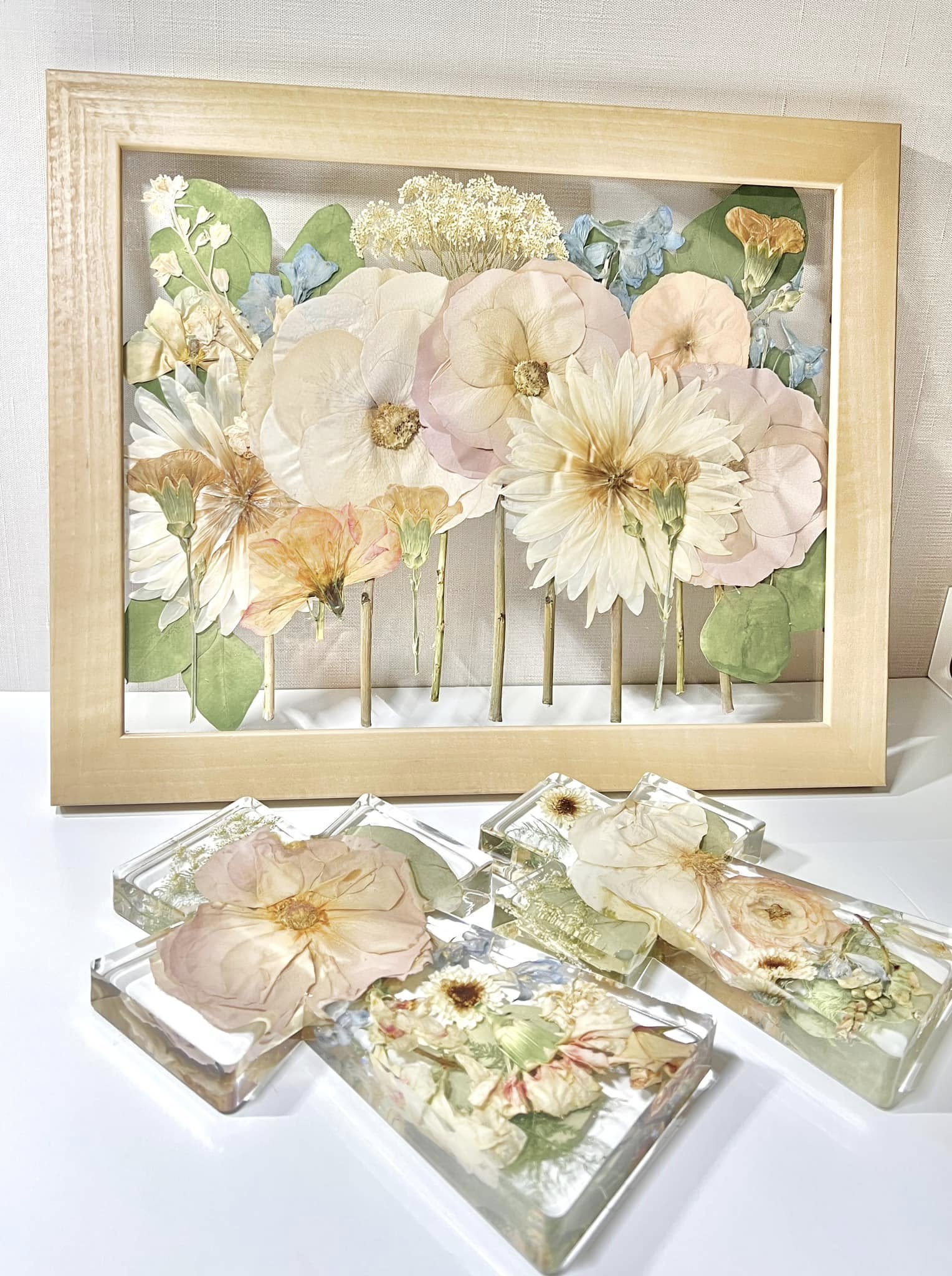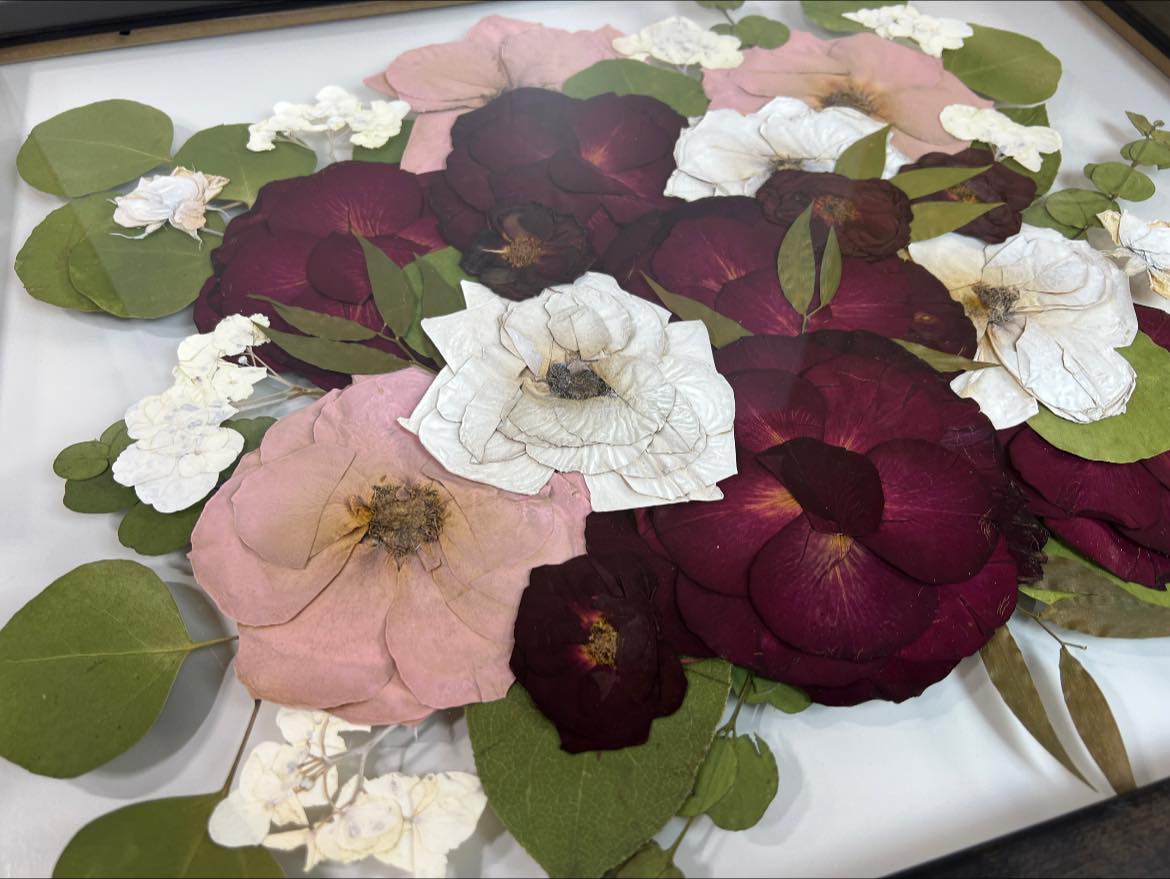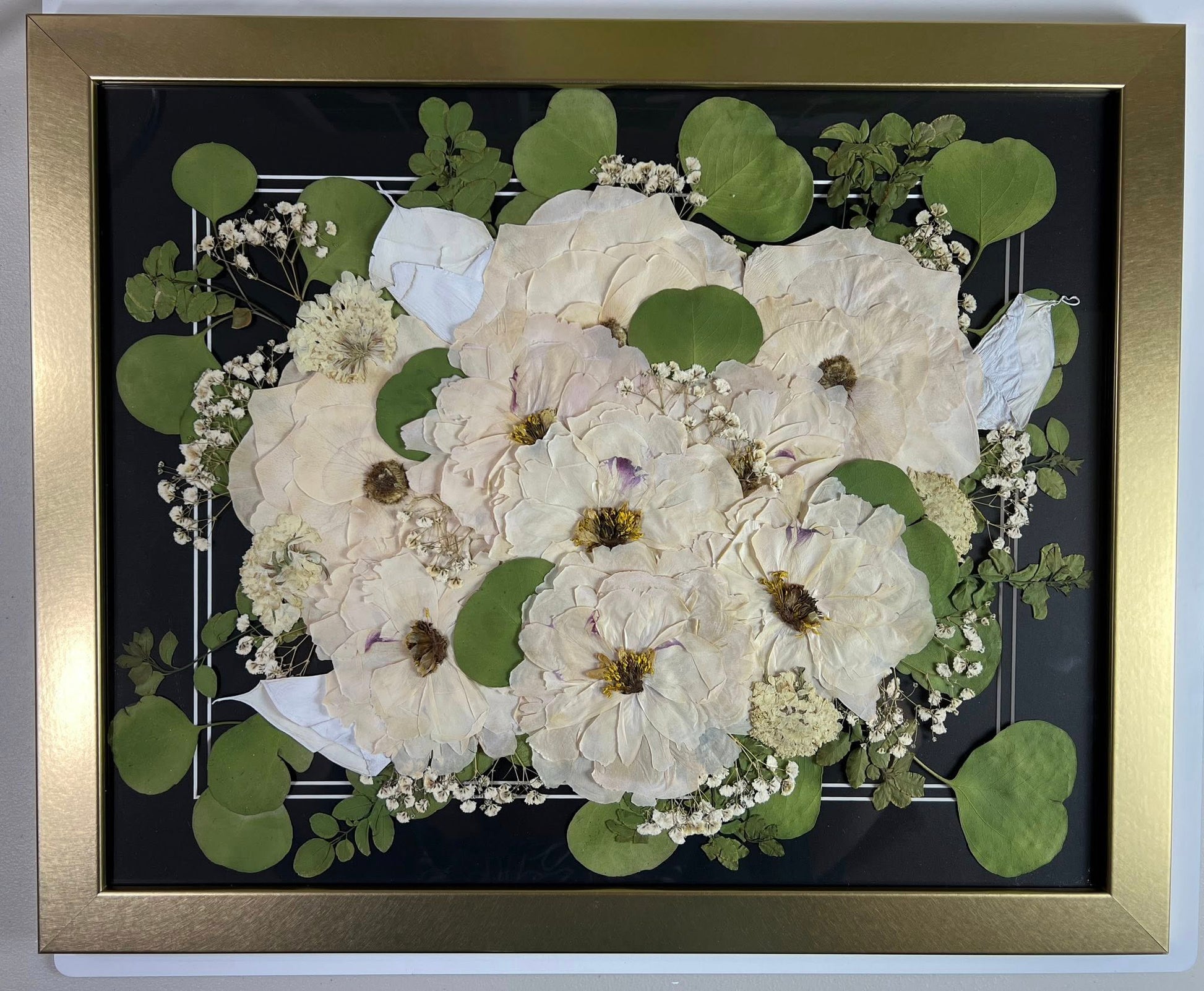 Our hand-crafted frames are meticulously pressed and designed to showcase your preserved flowers either as elegant floating displays or with a classic matte finish. Each flower arrangement is carefully assembled to capture the essence of your special day, ensuring your cherished memories are beautifully preserved. When necessary, we perform color correction to restore any loss of vibrance, maintaining the natural beauty and significance of your floral keepsake.