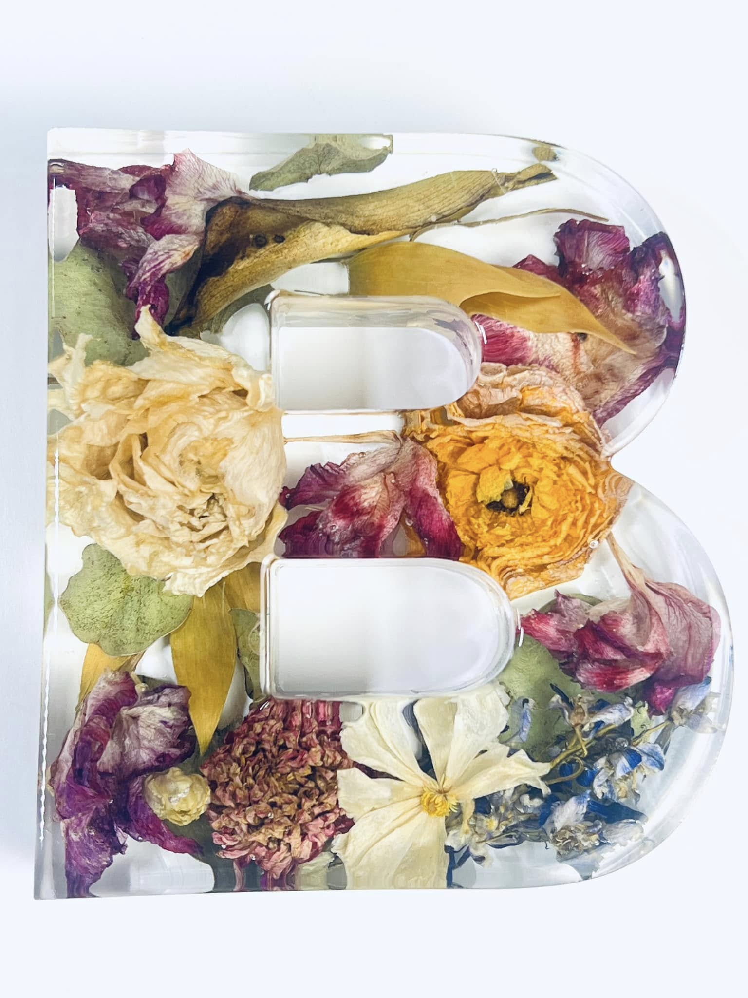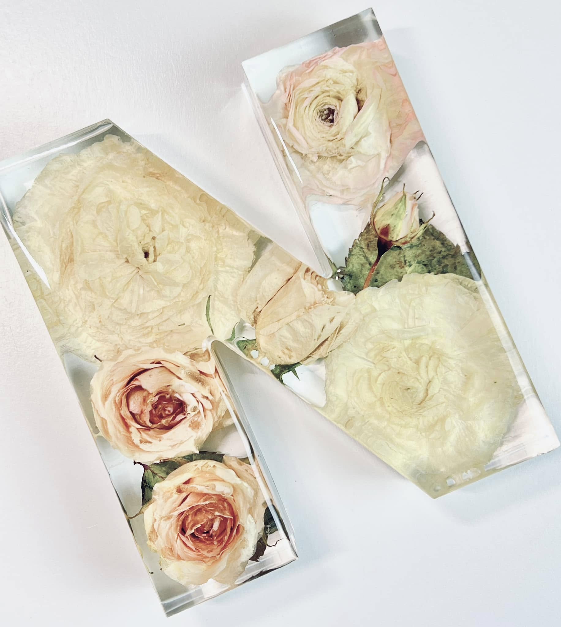 It is important to know that some flowers will fade during drying or pressing. For example, white will alter to beige, red will alter to maroon, light pink will alter to almost white. Resin will also naturally amber over time. Please keep out of sunlight and away from heat. We will offer color enhancement at our discretion in detrimental situations only.